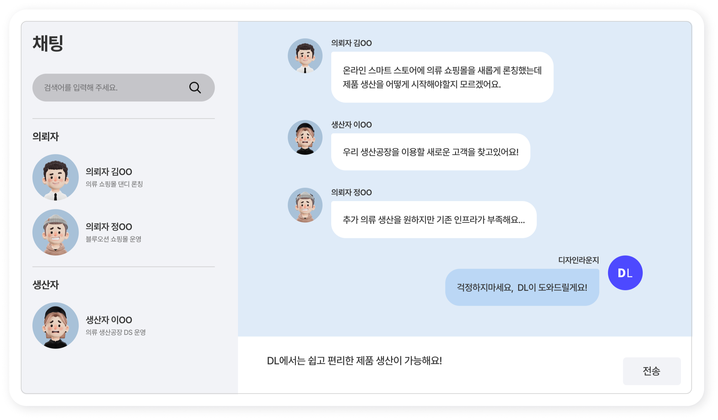 “디자인라운지와의 파트너십을 통해 저희 사업이 크게 성장했습니다. 고품질 의류를 찾는 다양한 발주 업체와 직접 연결될수 있게 되었습니다. 플랫폼이 제공하는 투명성과 지원 덕분에 고객 기반을 확대하고 서비스 품질을 향상시킬 수 있었습니다.”